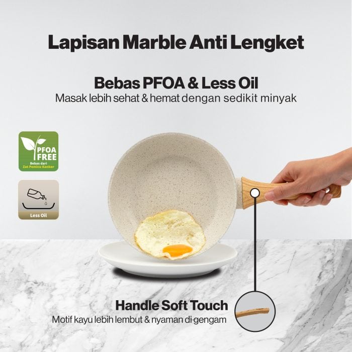 • Lapisan anti lengket dengan tampilan Marble yang mewah dan elegan