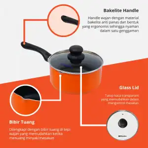 Handle atau gagang Sauce Pan juga terbuat dari material berkualitas berbahan Bakelite yang sangat efektif meredam panas sehingga nyaman digenggam selama maupun setelah proses memasak.