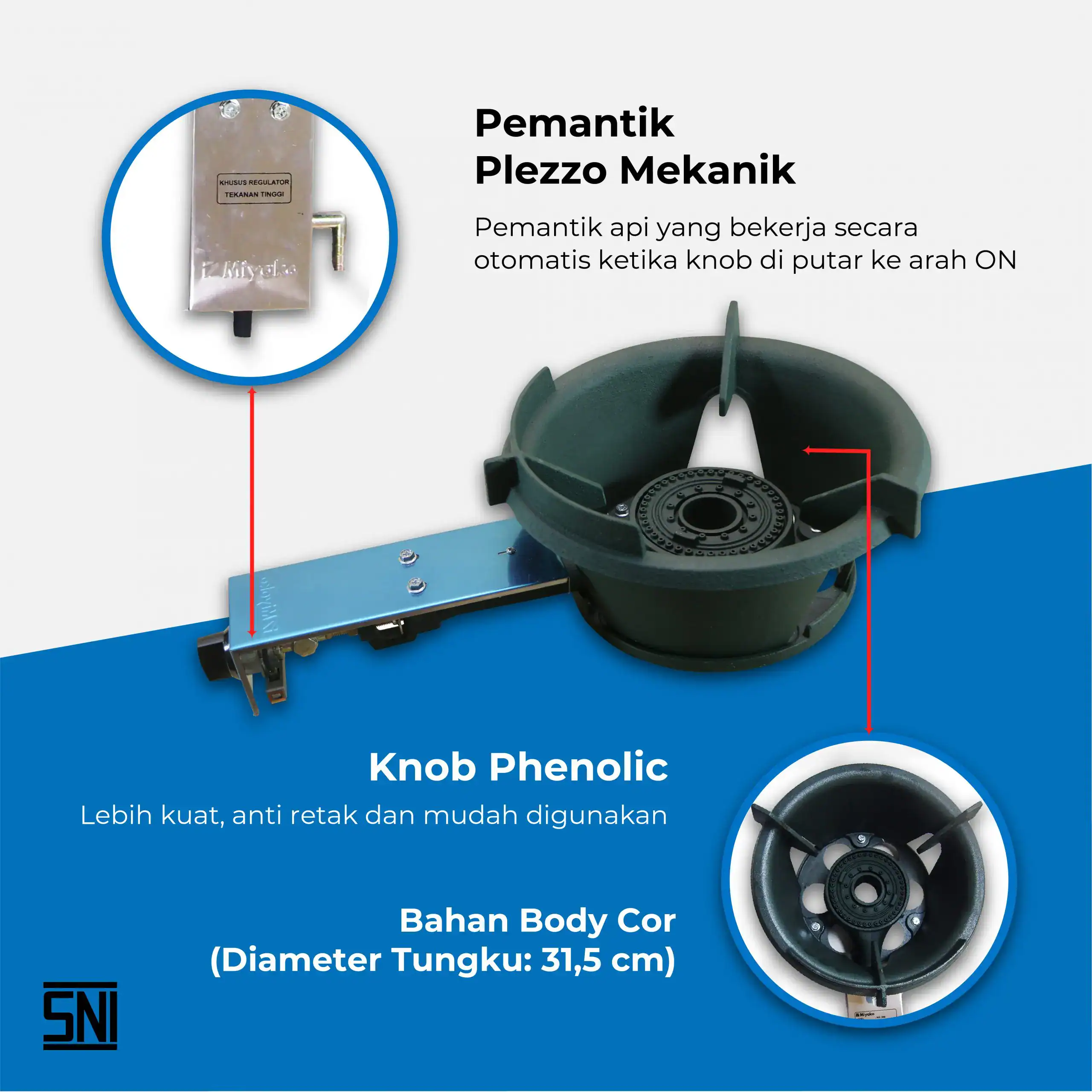 - Body dibalut dengan Full Cast Iron yang lebih kokoh dan awet
