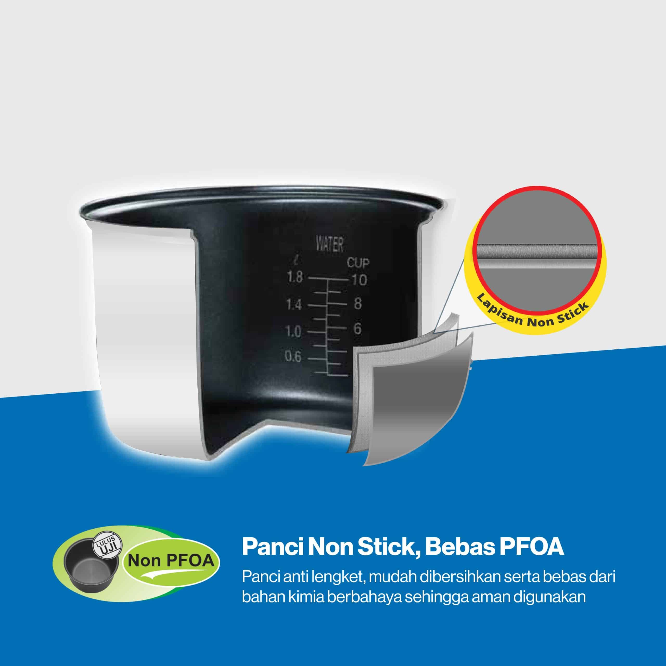 - Panci rice cooker telah teruji bebas dari zat kimia asam PFOA berbahaya Lihat Selengkapnya