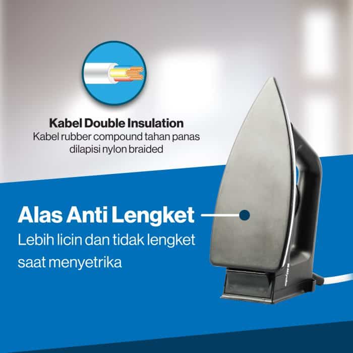- Alas Anti Lengket sehingga lebih licin saat menyetrika